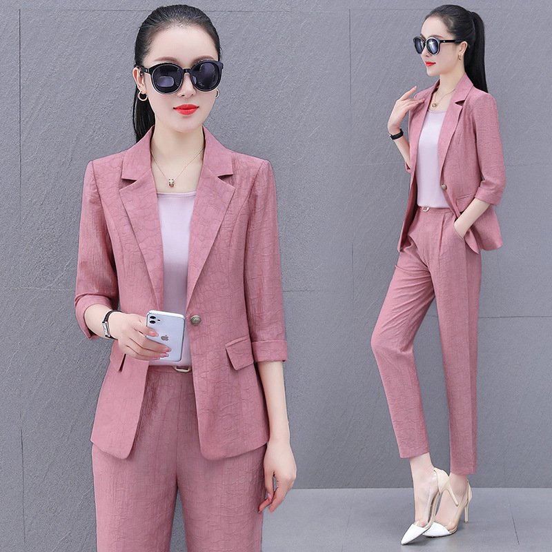 【เสน่ห์ของผู้หญิง】ชุดสูทลำลองสตรี แบบกางเกงขาบาน เซ็ท 2 ชิ้น
